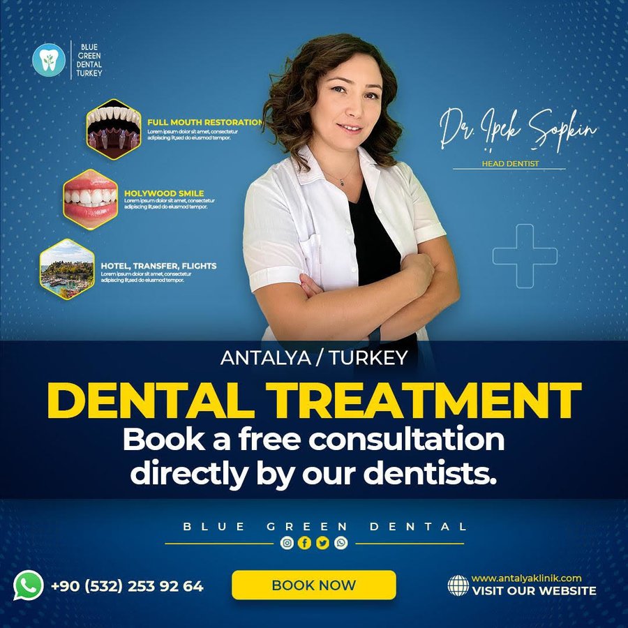 تمتع بتجربة رعاية أسنان عالية الجودة في عيادة مافي يشيل (الأزرق والأخضر) لطب الأسنان في أنطاليا. تفخر عيادتنا بتقديم رعاية استثنائية للمرضى والاستفادة من أحدث التقنيات في مجال طب الأسنان. سواء كنت في حاجة إلى زراعة الأسنان أو طب الأسنان التجميلي أو قنوات الجذر أو التبييض ، فإن فريقنا من ذوي الخبرة هنا لتزويدك بعلاجات فعالة وفعالة. يجلب طبيب الأسنان الرئيسي لدينا ، Ipek ، خبرتها من كندا ويجيد اللغة الإنجليزية ، مما يضمن تجربة مريحة لمرضانا الدوليي... (عرض المزيد)