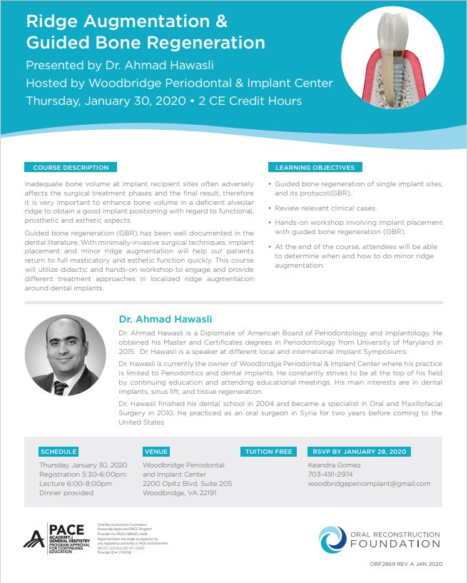 حول مركز وودبريدج للأسنان والغرسات مركز وودبريدج للأسنان والغرسات هو عيادة أسنان مخصصة لخدمة العائلات والأفراد العسكريين في وودبريدج ، فرجينيا. بقيادة الدكتور أحمد حواسلي ، وهو طبيب أسنان معتمد من المجلس الأمريكي لأمراض اللثة ، تتخصص العيادة في علاج أمراض اللثة المتقدمة وزراعة الأسنان. يوفر الدكتور حواسلي الرعاية الشخصية لكل مريض، وذلك باستخدام أحدث التقنيات والتقنيات لضمان تحقيق أفضل النتائج. وتلتزم العيادة بمساعدة المرضى على تحقيق صحة الفم المث... (عرض المزيد)