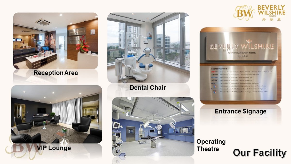 Beverly Wilshire Dental Kuala Lumpur offers a comprehensive range of dental services provided by highly skilled and experienced dental specialists. Since 2014, our clinic has been dedicated to delivering excellence in dentistry and is licensed by the Ministry of Health Malaysia. Our popular services include ceramic/porcelain veneers, clear aligners such as Invisalign, teeth whitening, dental implants, braces, bridge work, dentures, and various ot... (Show more)