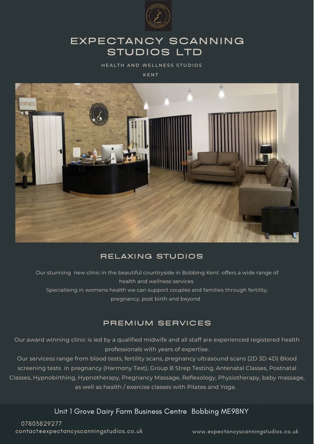 About Expectancy Scanning Studios Ltd Award winning 5* women's health ultrasound services in Kent offering 2D ultrasound in Fertility & Gynaecology & 3D 4D pregnancy scans. Also offering NIPT/Harmony Test and Group B Strep (GBS) Test (not currently routinely offered on NHS). We are the only baby scan and gynaecology/fertility scanning service in Kent led by a qualified Midwife, offering a personal service and with longer appointment ti... (Show more)